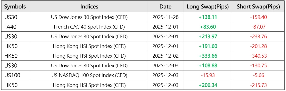 إشعار التعديل الخاص بعقود الفروقات على المؤشرات (28 نوفمبر 2025 - 3 ديسمبر 2025)