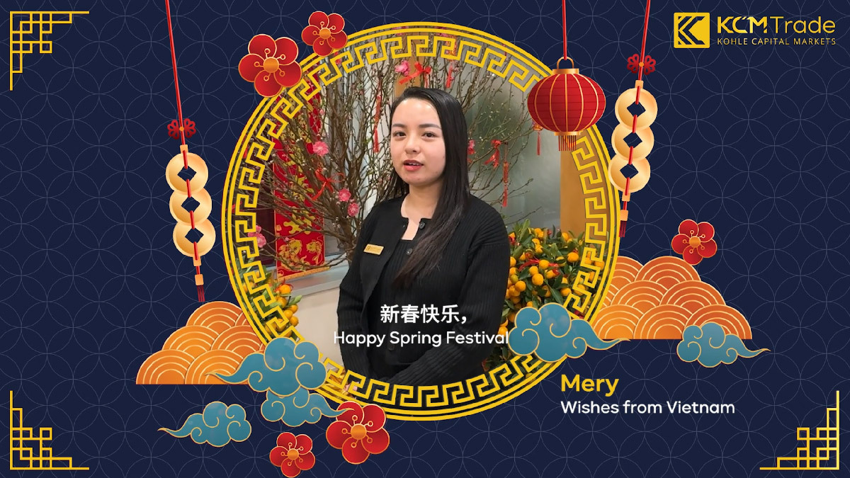 وفي ختام التحيات، يختتم تيم ووترر، كبير محللي السوق في KCM Trade، الرسائل الصادقة بتقديم التمنيات لعام التنين المحظوظ والمزدهر بعبارة "غونغ شي فا كاي" (أتمنى لكم الازدهار). تتداخل التحيات بالإنجليزية والماندرين والتايلاندية والفيتنامية والملايوية وغيرها من اللغات معا بتناغم، مكونة نسيجا نابضا بالحياة من التمنيات الطيبة لعام التنين القادم. من خلال التعبير عن التحيات بالإنجليزية والماندرين والتايلاندية والفيتنامية والملايوية ولغات أخرى، يتناغم تنوع فريقنا الثقافي الغني بسلاسة، ليصنع مجموعة حيوية من الأمنيات الصادقة لسنة التنين القادمة.