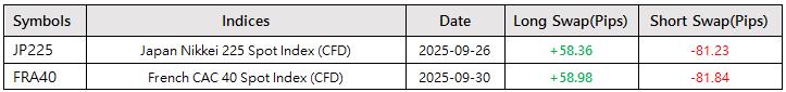 Our company will update the indices swaps around 18:00 (Beijing timeGMT+8). Clients can view the swap information in the Product Specifications section of the MT client platform. If you have any questions or need further clarification, please do not hesitate to contact us. Thank you!