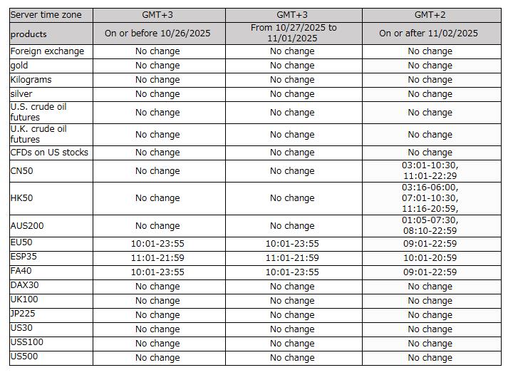 From October 27 2025 to November 1 2025, the trading hours of some products will be affected, the details of the trading hours are as follows.