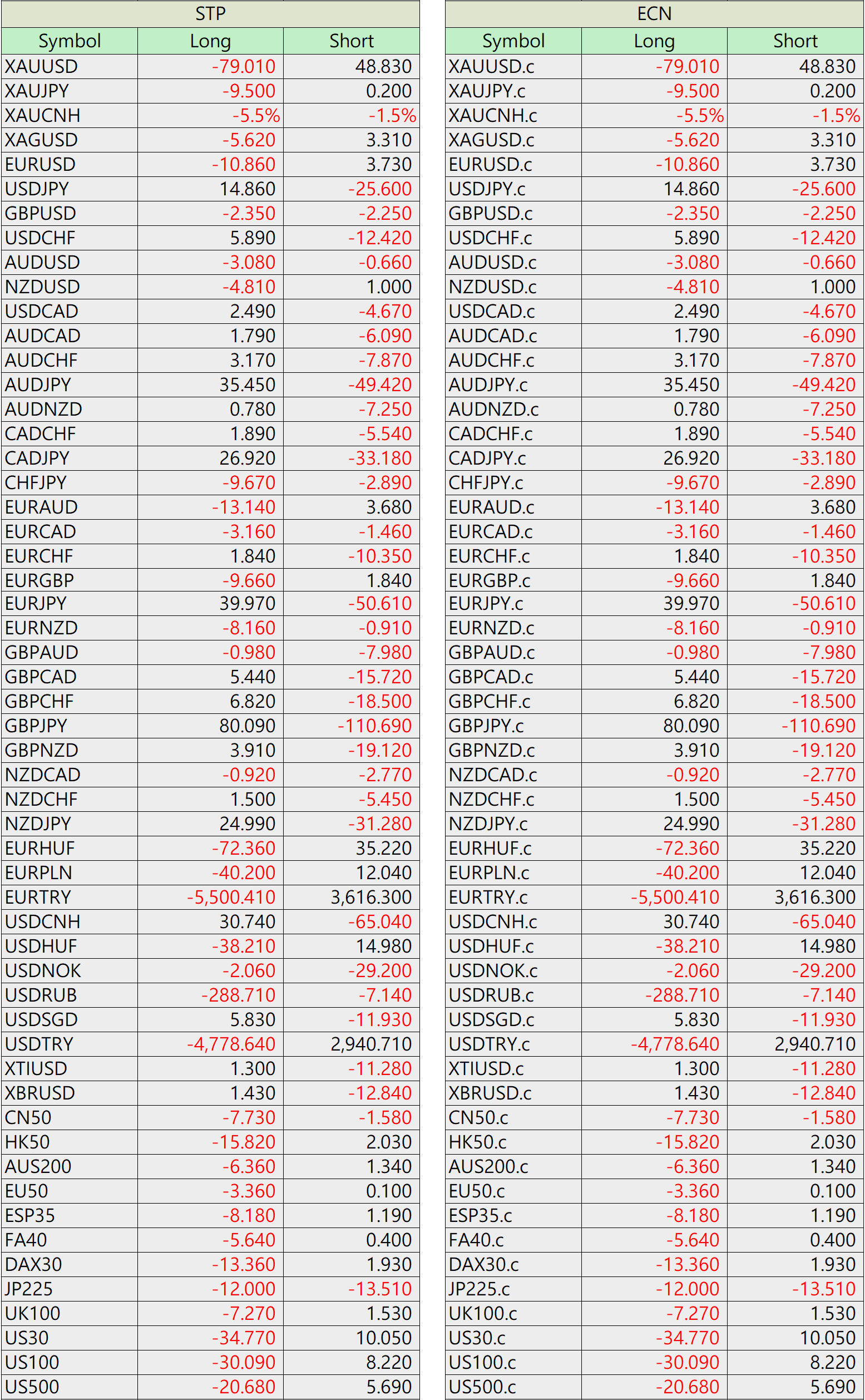 2. The values providedare sourced from liquidity providers (LP) and may be subject to omissions orerrors. Any changes will be reflected on the trading platform. Our companyupdates the FOREX and METAL swaps weekly (Beijing time GMT+8).