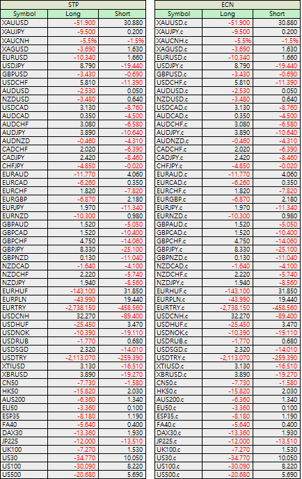 2. The values providedare sourced from liquidity providers (LP) and may be subject to omissions orerrors. Any changes will be reflected on the trading platform. Our companyupdates the FOREX and METAL swaps weekly (Beijing time GMT+8).