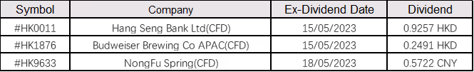 The following table is the information on upcoming dates of ex-dividendor other corporate actions for the underlying stocks of our Share and ETF CFD.