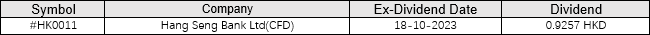 The following table is the information on upcoming dates of ex-dividend or other corporate actions for the underlying stocks of our Share and ETF CFD.
